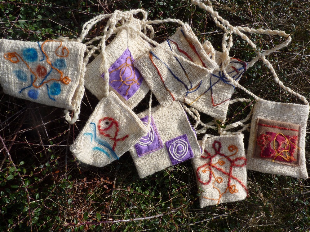 Ručně tkané taštičky z ovčí vlny, zdobené. Barevné kombinace a rozměry mohou být dle vašeho přání.Cena od 260,-- Kč, dle rozměrů.