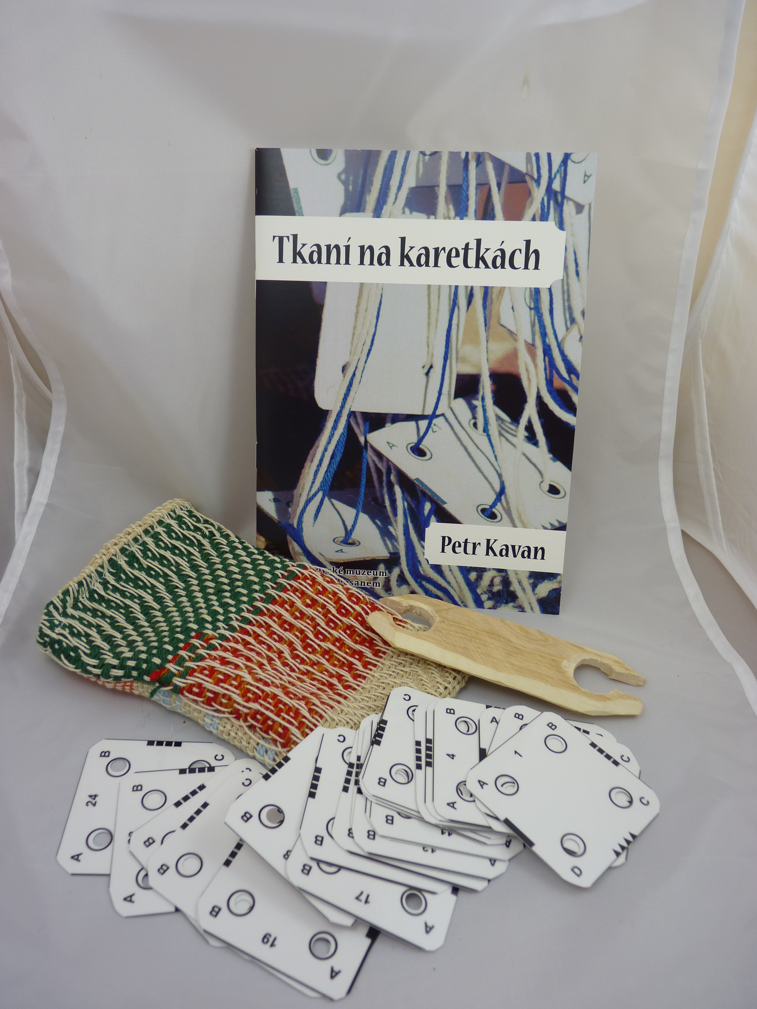 Sada karetek, 24 ks, dřevěná jehla, tzv. člunek, na útkovou přízi, vše je v praktickém pytlíku, K sadě dostanete i návod od autora knihy Tkaní na karetkách. Knihu už nemáme v tištěné podobě, je možné si ji přiobjednat v PDF, za zvýhodněnou cenu.